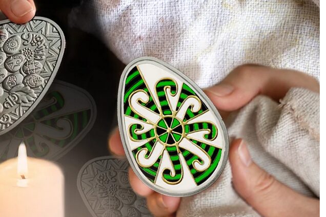 НБУ продає пам’ятну монету, присвячену писанкарству – традиційному українському мистецтву розпису великодніх яєць символічними орнаментами. Вона викарбувана зі срібла, а також оздоблена емаллю та локальною позолотою. При цьому форма монети унікальна – замість звичайної круглої вона яйцеподібна.