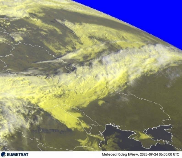 25 вересня атмосферний фронт зсунеться до південної околиці України, протягне з собою невеликі дощі та рвучкий вітер через центр та схід. Уже 26 вересня вся територія країни належатиме сухій сонячній, проте холодній погоді.